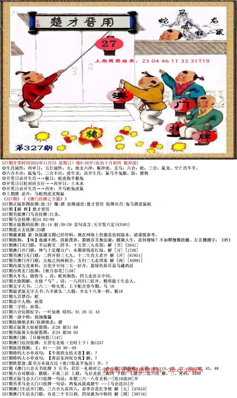 327期【鸡虎猪牛狗羊鼠蛇猴】开:蛇37准