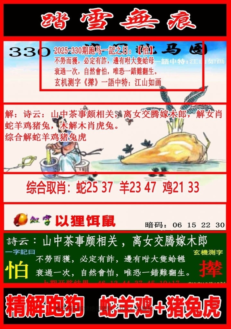 330期【马鼠兔羊鸡猪虎牛蛇】开:马36准