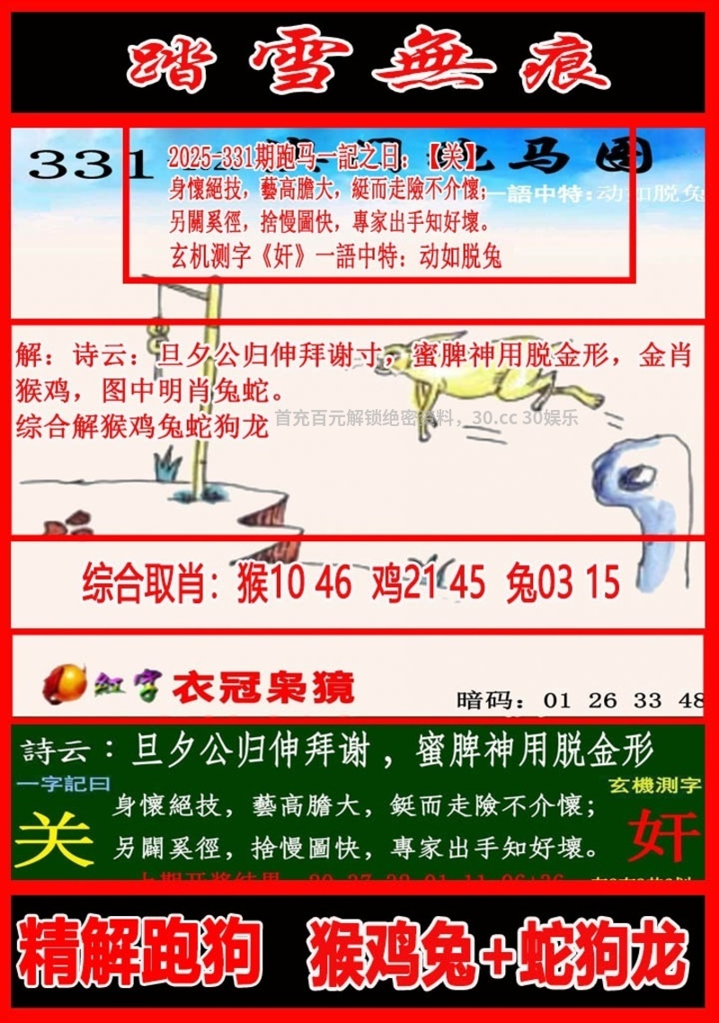 332期【兔马猴狗猪龙蛇鼠鸡】开:發00准